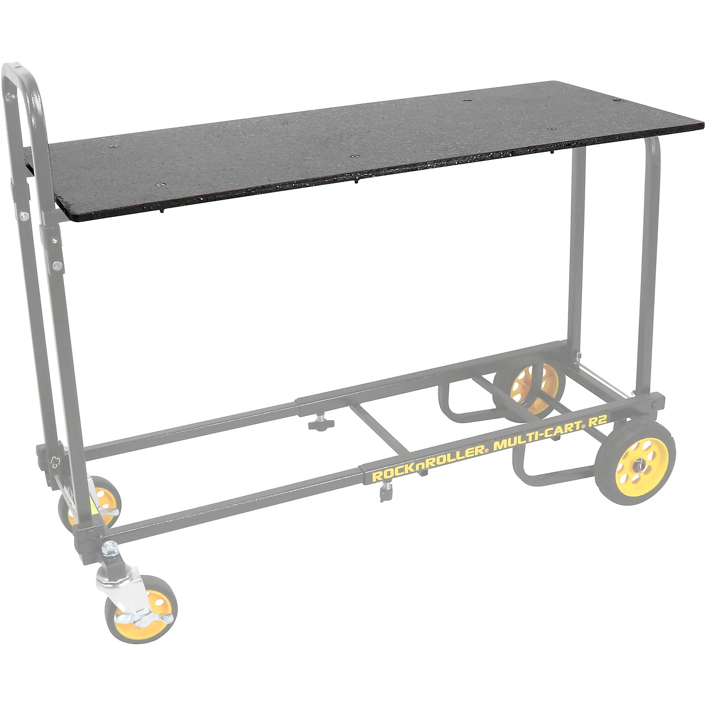The Rock-N-Roller R2 “Quick Set” Long Shelf is designed to quickly transform your R2RT into a mobile workstation. Once the support posts are installed, the shelf can be installed quickly with a single wing nut. The surface measures 36.5″ long x 15.75″ wide to provide ample work space for mobile sound, film production, testing equipment, and other professional on-site applications, as well as maximizing gear transport efficiency. The support posts can also remain attached during storage, for quick on-site assembly and disassembly. The shelf is 0.5″ thick, supported by steel tubes, covered in heavy duty paint for durability, and is easily removed for storage and transport.Fits cart model R2RT. Not compatible with handles that do not have pre-drilled holes.